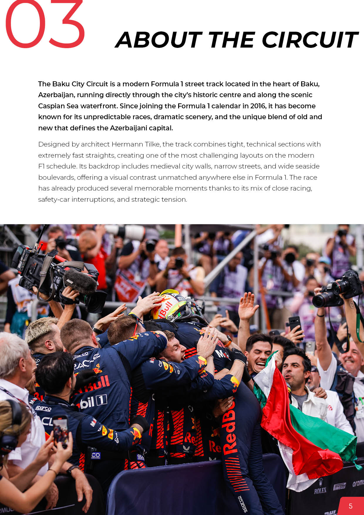 ✓ Bakü’deki F1 yarışına birkaç kez katılmış deneyimli bir ekip tarafından hazırlanmıştır